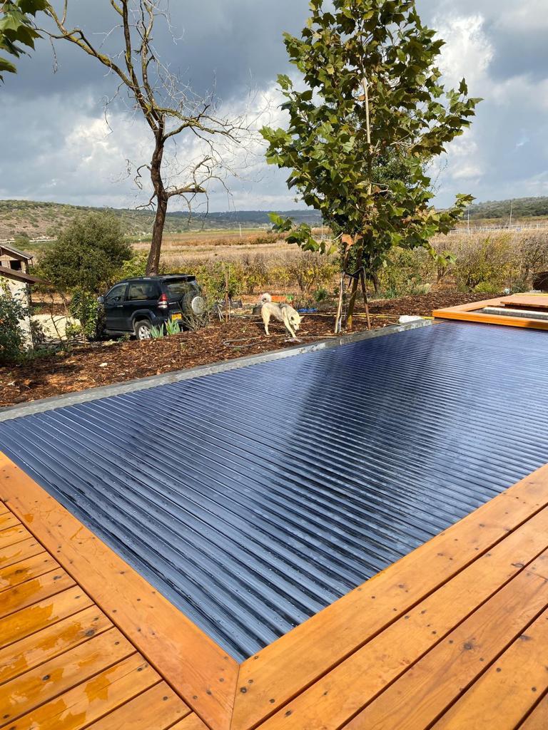 | כיסוי דק הידראולי | רב-שימושיות ואסתטיקה: נסגר לשני חלקים, שומר חום וניקיון, משמש כמשטח נוסף בגינה. | דורש תחזוקה, מומלץ לוודא קבלת אחריות ארוכת טווח. |