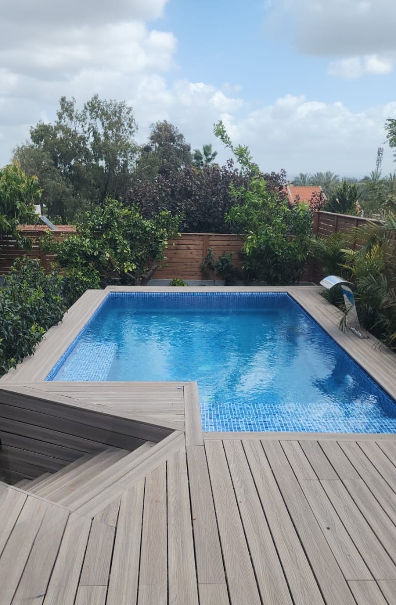 • בריכה מתועשת או פיברגלס – פתרון מהיר ויעיל, במיוחד כשיש לוח זמנים צפוף. מתקבלת בריכה איכותית, יפה ועמידה, בזמן קצר יותר.